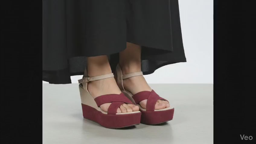 Duo tone elegant cross strap 10cm high wedge sandal 3025